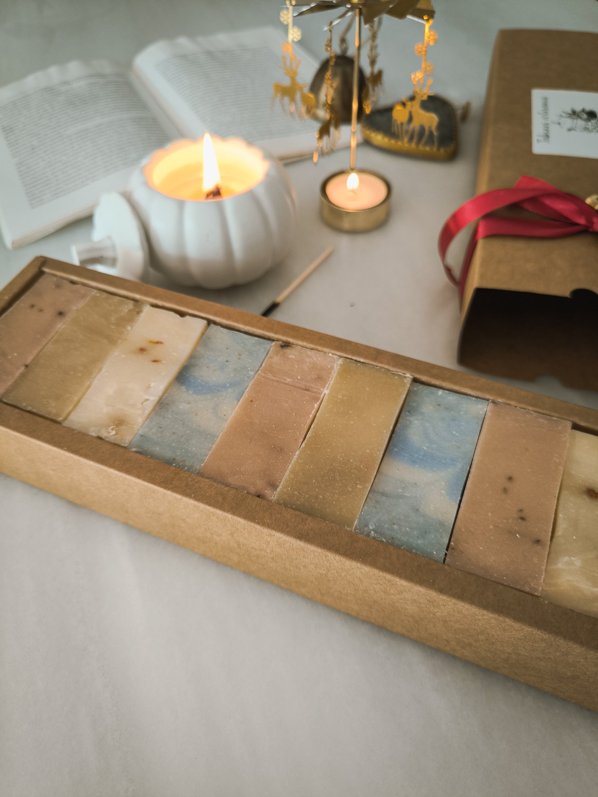 Descubre nuestra caja de 9 jabones naturales, elaborados artesanalmente con ingredientes naturales y pensados para cuidar la piel con suavidad. Cada caja incluye una selección equilibrada de cuatro variedades diferentes, perfectas para regalar o disfrutar en tu rutina de autocuidado.