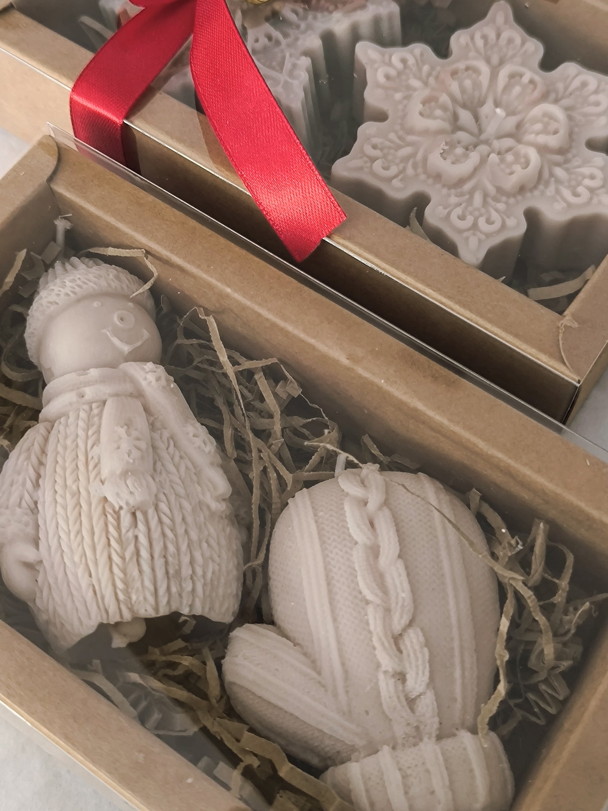 Presentadas en una caja navideña, son el regalo perfecto para quienes aman los inviernos tranquilos, la artesanía y los detalles con alma.