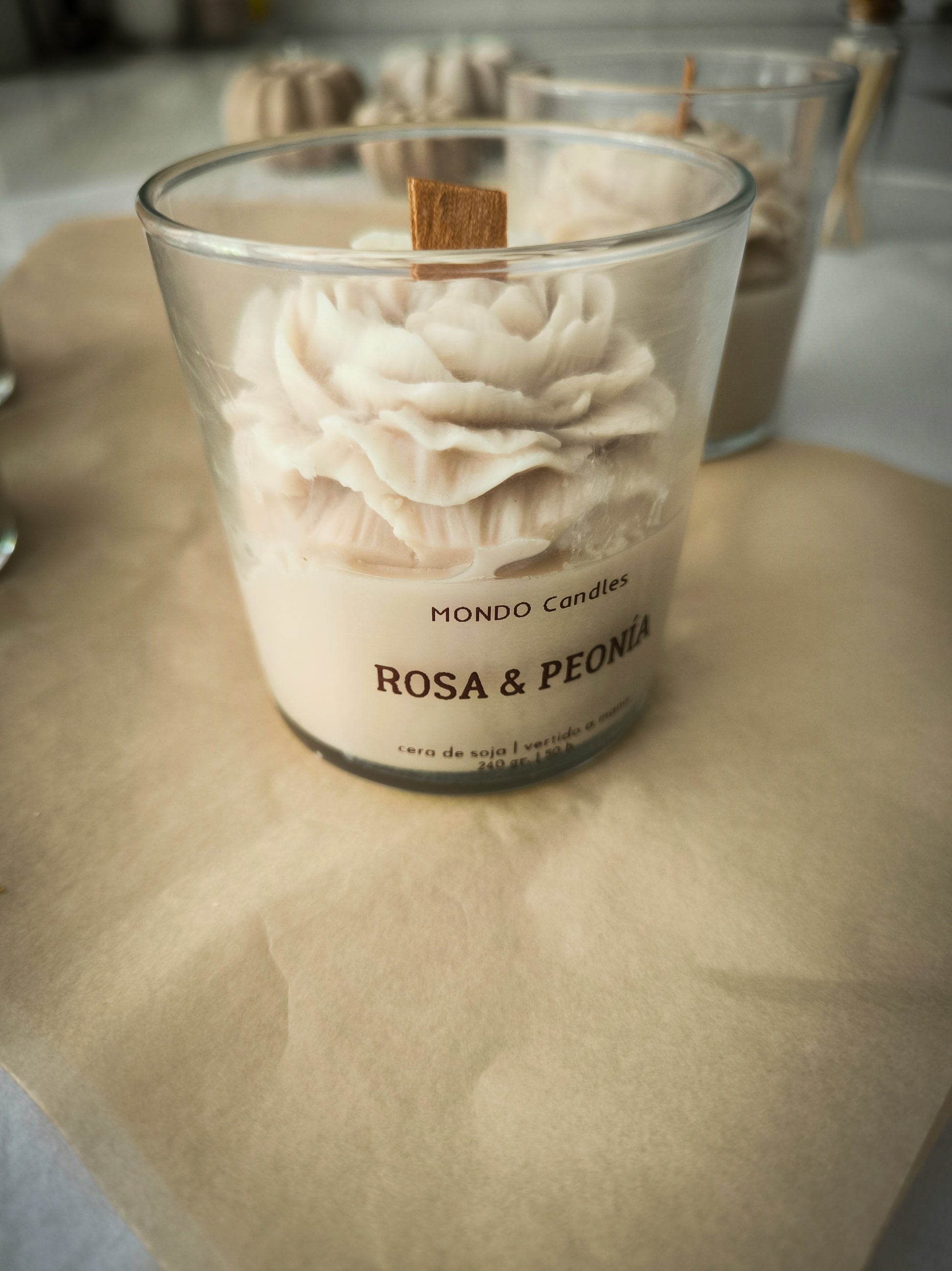Descubre la magia de Mondo Home Candles con nuestra vela en vaso, aromática y artesanal, en forma de una bella flor!